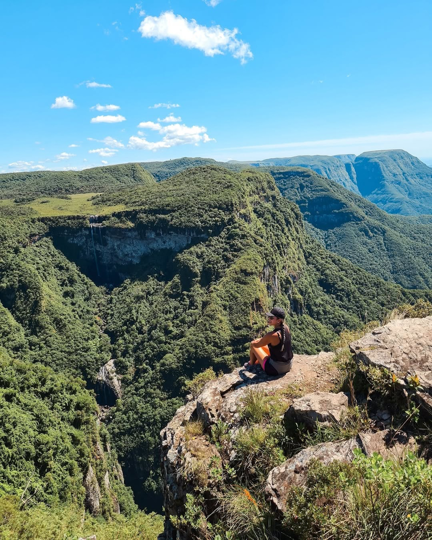 Já na trilha do vértice, caminhamos pela matinha nebular, floresta típica das bordas dos canyons. A trilha é parcialmente calçada, e há diversos mirantes com vista para as cachoeiras que formam o Canyon, são elas: Andorinhas e Véu da Noiva.